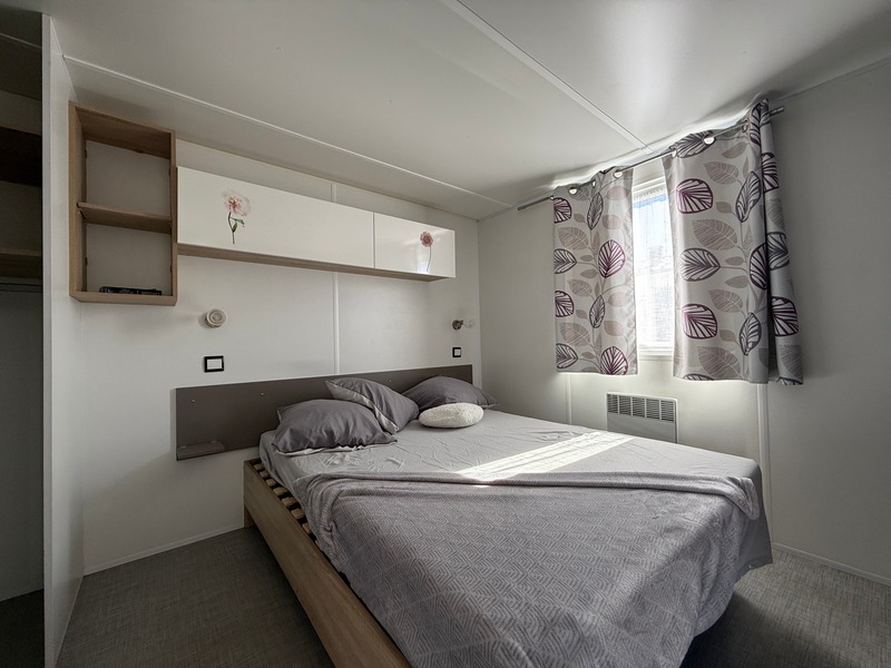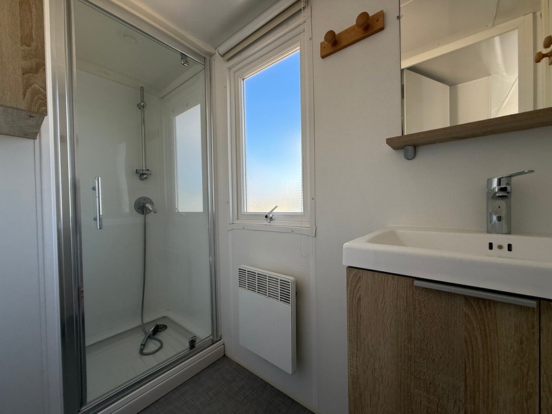 The Rapidhome Lodge Résidentiel is a 36 m² mobile home with a modern design and sturdy structure, offering 2 bedrooms with good storage space, a bathroom with shower, a bright living room, and a kitchen equipped with a hob, oven, extractor fan, and refrigerator, with a dining area. With its smart layout, it provides a comfortable environment.